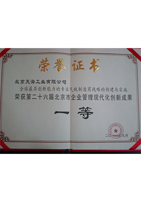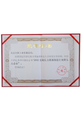 天海工業(yè)一直秉承“誠(chéng)信、敬業(yè)、學(xué)習(xí)、創(chuàng)新,志在一流”的企業(yè)精神,以安全可靠的產(chǎn)品和優(yōu)質(zhì)的服務(wù),樹(shù)立了良好的企業(yè)形象,先后榮獲中國(guó)百?gòu)?qiáng)企業(yè)、北京市十佳外商投資企業(yè)、北京市高新技術(shù)企業(yè),中國(guó)金屬壓力容器制造行業(yè)排頭兵企業(yè)和全國(guó)“五一”勞動(dòng)獎(jiǎng)狀、“北京市專精特新小巨人企業(yè)”、“國(guó)家級(jí)專精特新小巨人企業(yè)”等榮譽(yù)稱號(hào)。