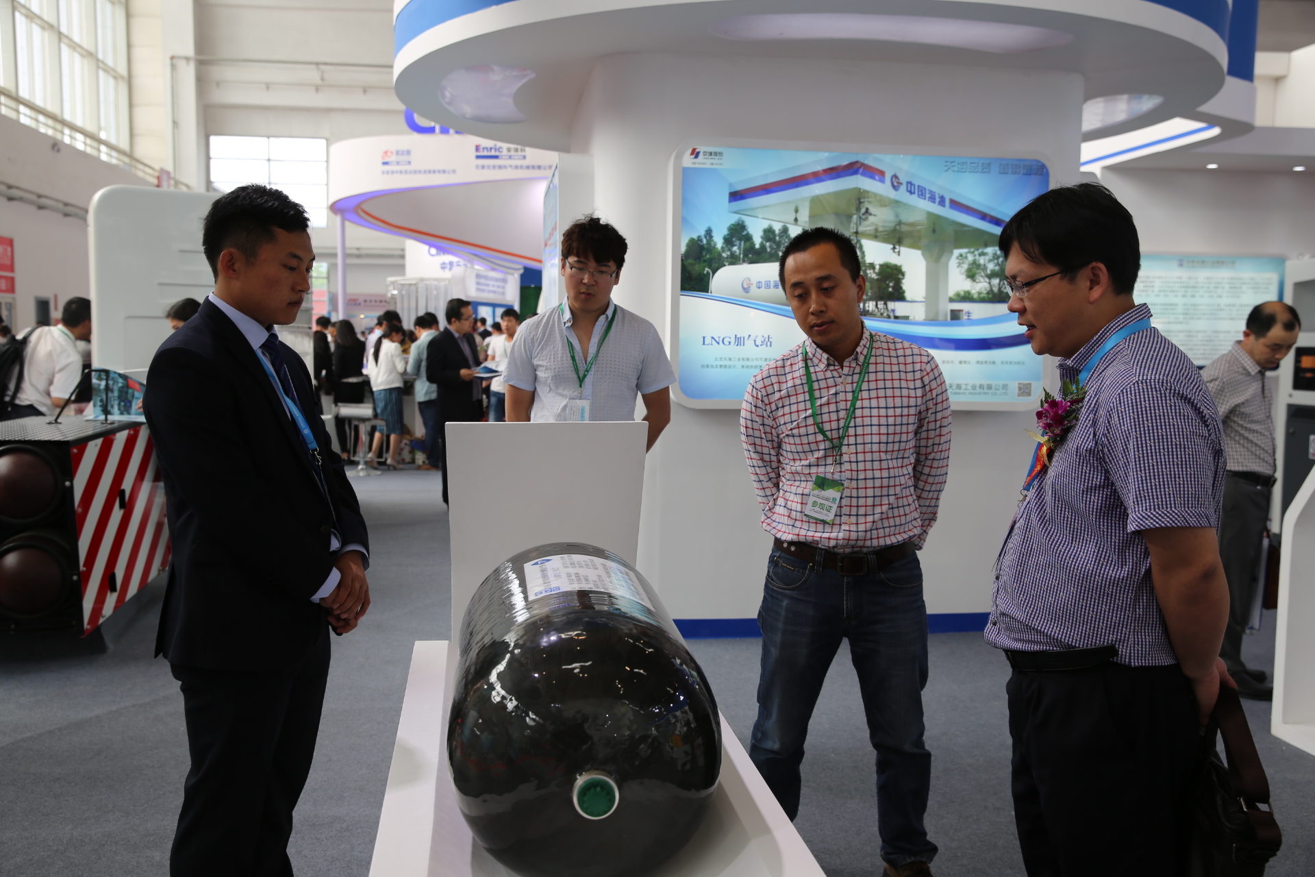 天海工業(yè)秉承高效、環(huán)保、節(jié)能的理念,致力于推動清潔能源燃料系統(tǒng)的發(fā)展,提供天然氣儲運領(lǐng)域全套解決方案。此次展會,不僅展出了公司全新研制的車用壓縮天然氣鋁內(nèi)膽碳纖維全纏繞復(fù)合氣瓶(CNG-3型瓶)、車用壓縮氫氣鋁內(nèi)膽碳纖維全纏繞復(fù)合氣瓶(CNG-3型瓶),還有公司最新研發(fā)的具有國內(nèi)先進(jìn)技術(shù)的LPP型車用LNG氣瓶以及大直徑車用LNG氣瓶,更有應(yīng)用于定檢站維修站應(yīng)用的真空降級維修設(shè)備、小型汽化站系統(tǒng)以及加氣站物聯(lián)網(wǎng)系統(tǒng)等多種全新產(chǎn)品。此外通過循環(huán)播放公司宣傳片及精心設(shè)計的30多塊展板全面展示了公司在天然氣儲運領(lǐng)域所能提供的系列產(chǎn)品及服務(wù)。
